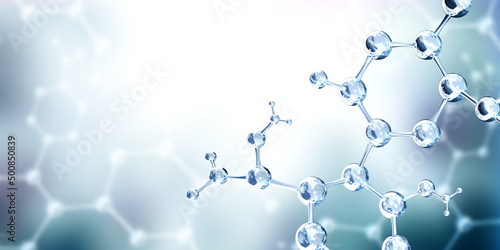 The watermark will not be included on Wall mural.: Horizontal banner with models of abstract molecular structure - science or education background with