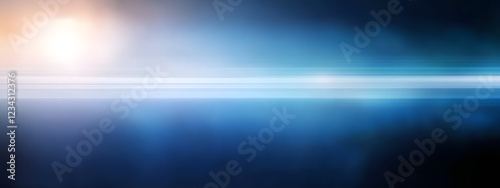 The watermark will not be included on Wall mural.: Horizontal blue abstract bokeh blurred color background with lens flare