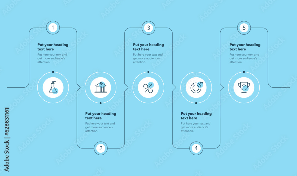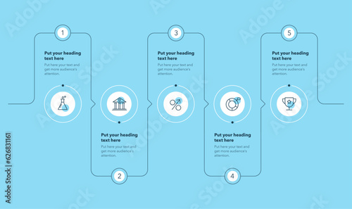 Wall mural : Horizontal circular process template with five steps - blue version - simple flat diagram for project