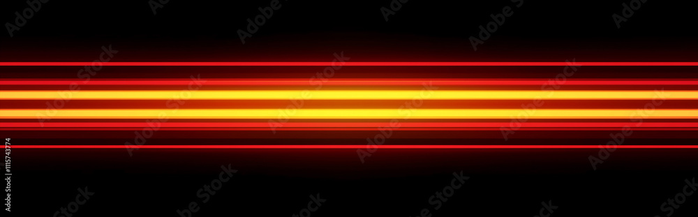 The watermark will not be included on Wall mural.: Horizontal gradient of red and yellow light lines on a black background, creating an abstract gradie
