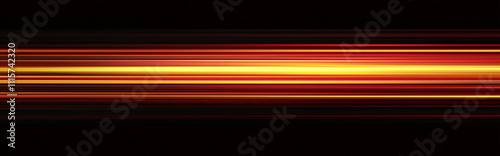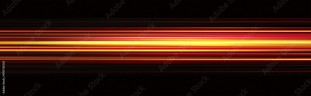 The watermark will not be included on Wall mural.: Horizontal gradient of red and yellow light lines on a black background, creating an abstract gradie