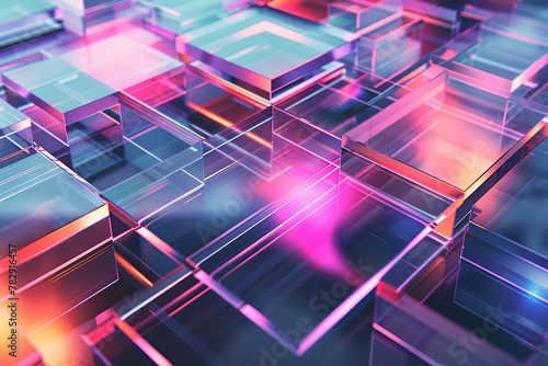 Wall mural : Horizontal image of colourful glowing transparent abstract cubes and layers background