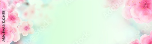 Wall mural : Horizontal japanese spring sakura cherry blossoms 234x60 size website half banner background - 3d ill