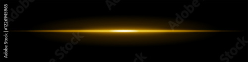 Wall mural horizontal light flare on a black background. glowing yellow beam with soft gradient effect, futuris