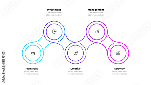 Wall mural : Horizontal progress diagram with five metaball elements - concept of 5 steps of business timeline - cr