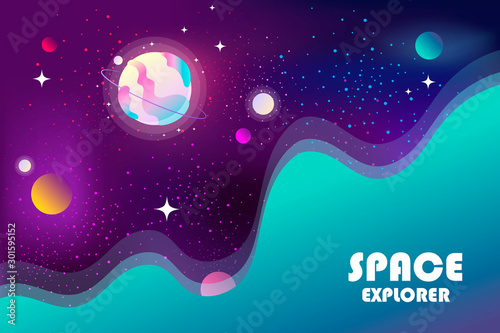 Wall mural horizontal space background with abstract shape and planets. web design. space exploring. vector ill