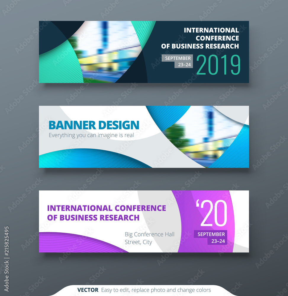 Horizontal web banner templtes with circles and shapes for a photoWall mural