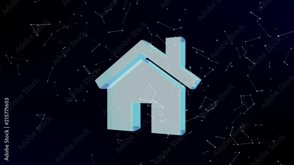 Wall mural house being formed by revolving particles. futuristic structure of plexus lines and points, dark blu - Wall murals Wall mural house being formed by revolving particles. futuristic structure of plexus lines and points, dark blu - Wall murals