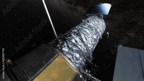 The watermark will not be included on Wall mural.: Hubble space telescope actioncamera static style spinning and aligning to take pictures of milky way