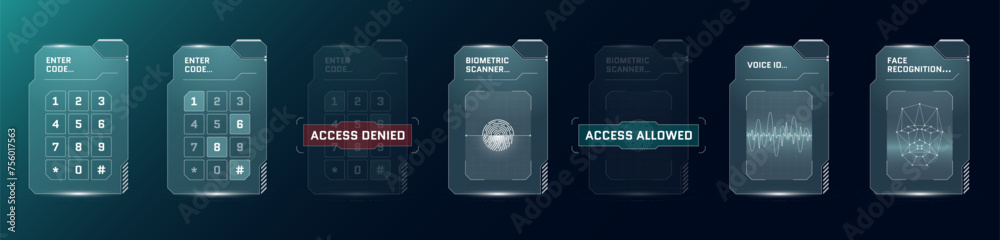 Wall mural hud biometric id set. digital user recognition gui or fui interface. person security verification pi - Wall murals Wall mural hud biometric id set. digital user recognition gui or fui interface. person security verification pi - Wall murals