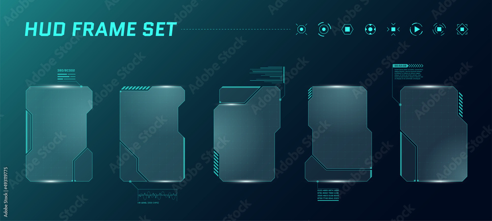 Hud digital futuristic user interface square frame set - sci fi high tech screens - gaming menu touchiWall mural