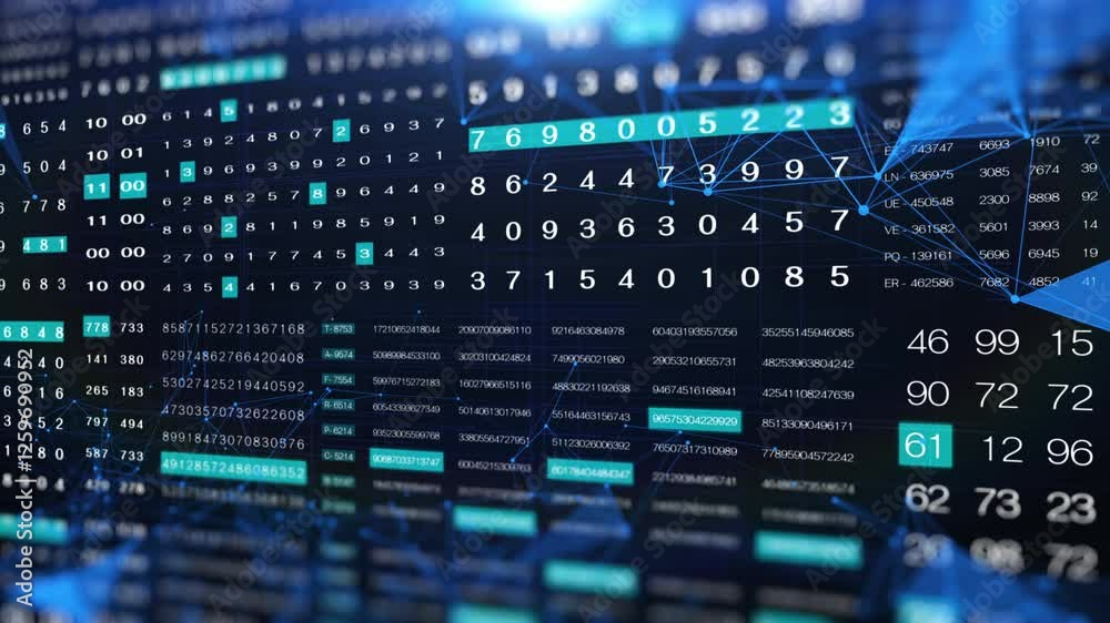 The watermark will not be included on Wall mural.: Hud futuristic digital data number code animation perspective view with low poly moving 4k motion - a