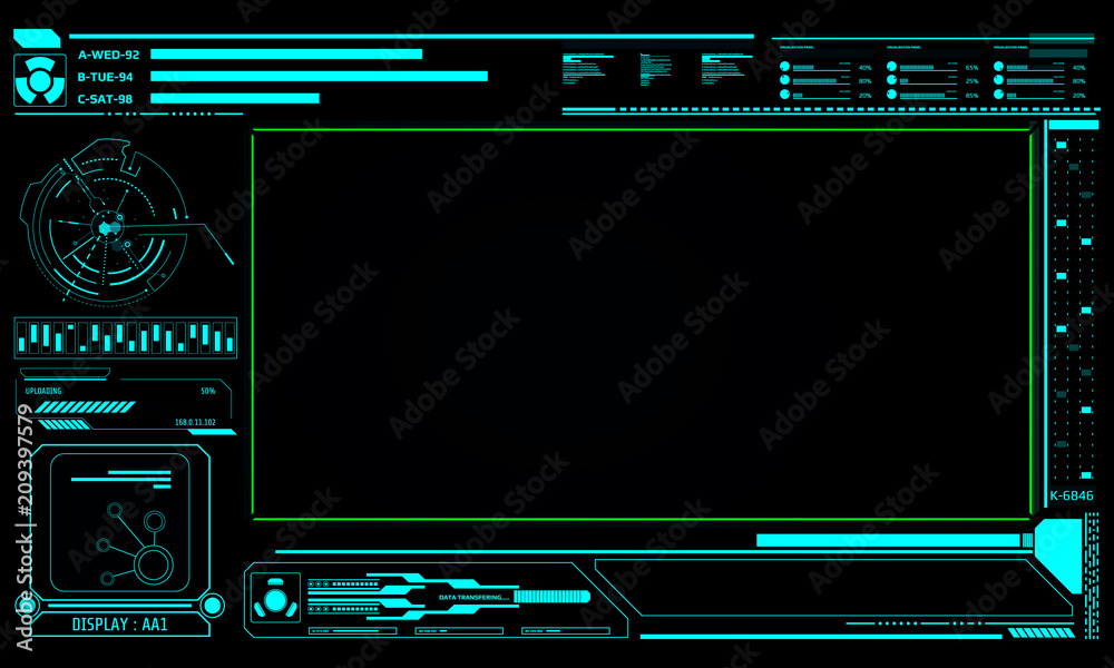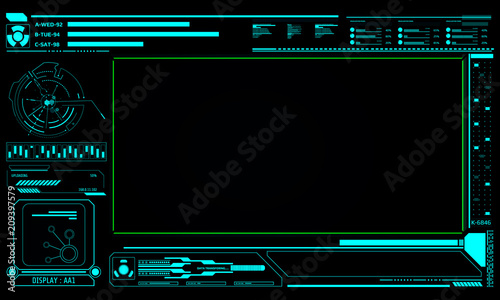 Wall mural hud futuristic elements screen information vector. green frame virtual abstract data transfer status