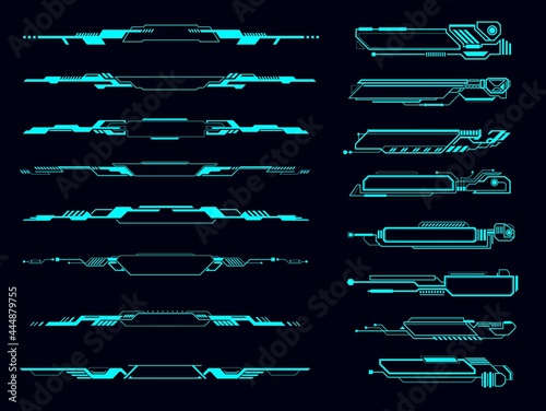 The watermark will not be included on Wall mural.: Hud info boxes, futuristic display borders and interface, elements, vector - hud tech or digital tech
