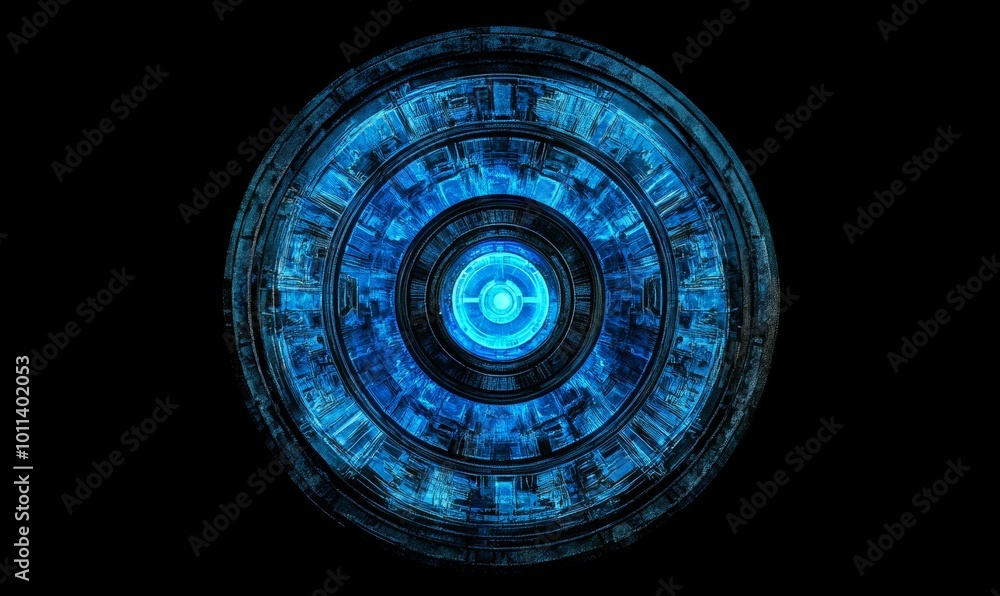 The watermark will not be included on Wall mural.: Hud interface with abstract futuristic circle round glowing technology frame -