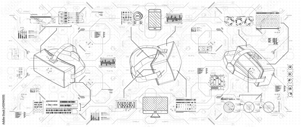 The watermark will not be included on Wall mural.: Hud ui for virtual reality glasses - futuristic user interface for app and web - head-up display infog