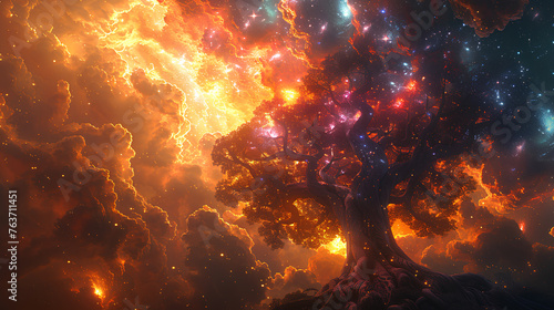 Wall mural : Huge trees of life blend with galaxies with generative ai
