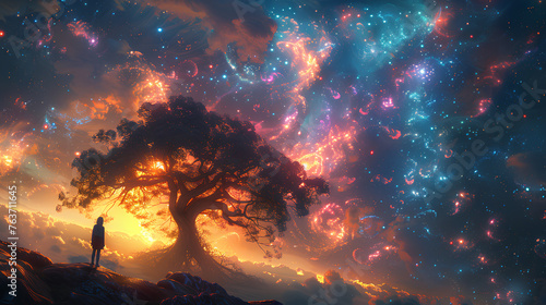 Wall mural : Huge trees of life blend with galaxies with generative ai