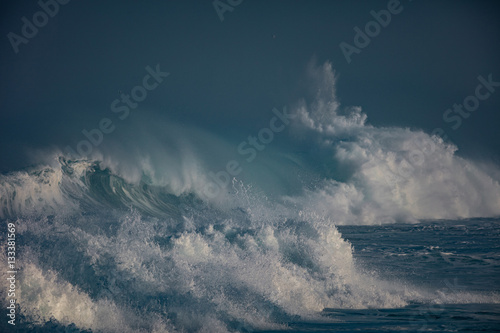 Wall mural : Huge waves crashing in ocean - seascape environment background - water texture with foam and splashes -