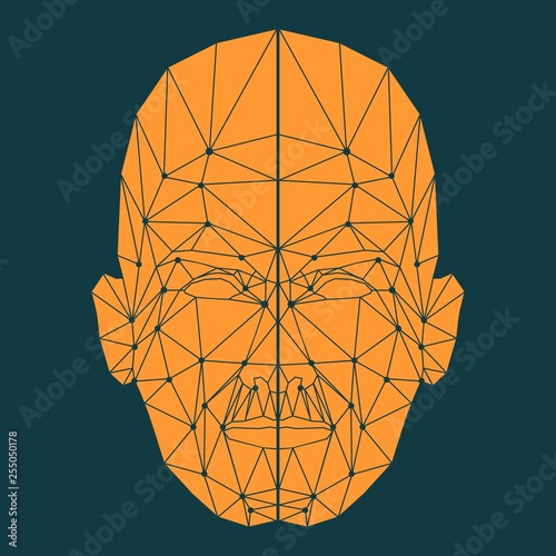 Wall mural human face low polygon. wireframe mash head shape consisting of connected dots and lines. abstract h - Wall murals Wall mural human face low polygon. wireframe mash head shape consisting of connected dots and lines. abstract h - Wall murals