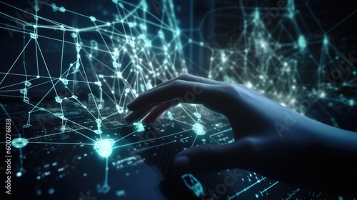 Wall mural human hand, big data of global network connection background generative ai - Wall murals Wall mural human hand, big data of global network connection background generative ai - Wall murals