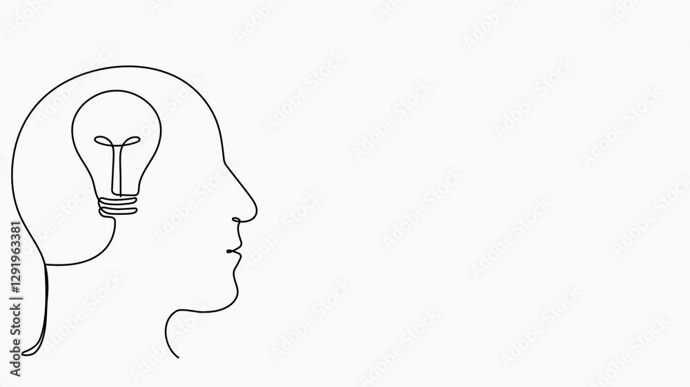 The watermark will not be included on Wall mural.: Human head with lightbulb and target with arrow continuous line drawing animation - creative idea pro