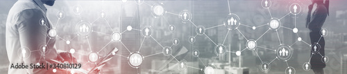 Wall mural : Human resource planning or business organisation on a virtual dashboard - mixed media website header