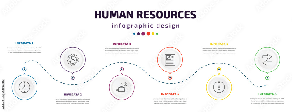 Wall mural human resources infographic element with icons and 6 step or option. human resources icons such as t