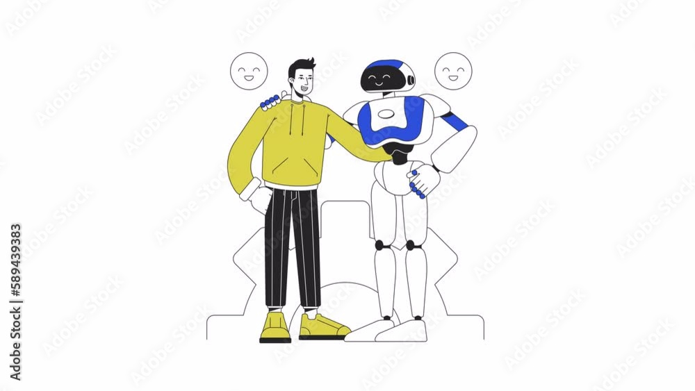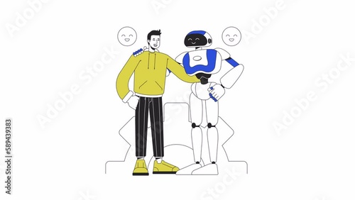 Wall mural human robot interaction animation. animated robotic engineer and machine 2d cartoon flat colour line - Wall murals Wall mural human robot interaction animation. animated robotic engineer and machine 2d cartoon flat colour line - Wall murals