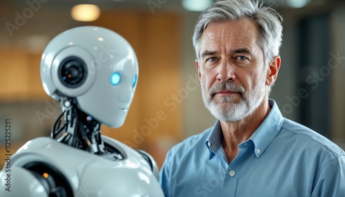 The watermark will not be included on Wall mural.: Human-robot interaction workshop tech lab educational session modern environment close-up innovation