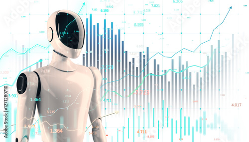 Wall mural humanoid robot with digital financial graphs and data visualizations in the background. futuristic c