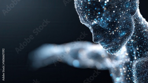 The watermark will not be included on Wall mural.: Humanoid silhouette rising through glowing digital technological representing ai innovation and netw