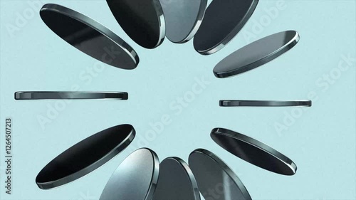 Wall mural hyper 3d visual motion: cinematic shape array with sphere coin metal - Wall murals Wall mural hyper 3d visual motion: cinematic shape array with sphere coin metal - Wall murals