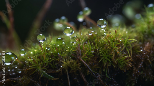 Wall mural hyper-realistic macro images featuring dewdrops on moss-covered surfaces. frame the composition to h - Wall murals Wall mural hyper-realistic macro images featuring dewdrops on moss-covered surfaces. frame the composition to h - Wall murals
