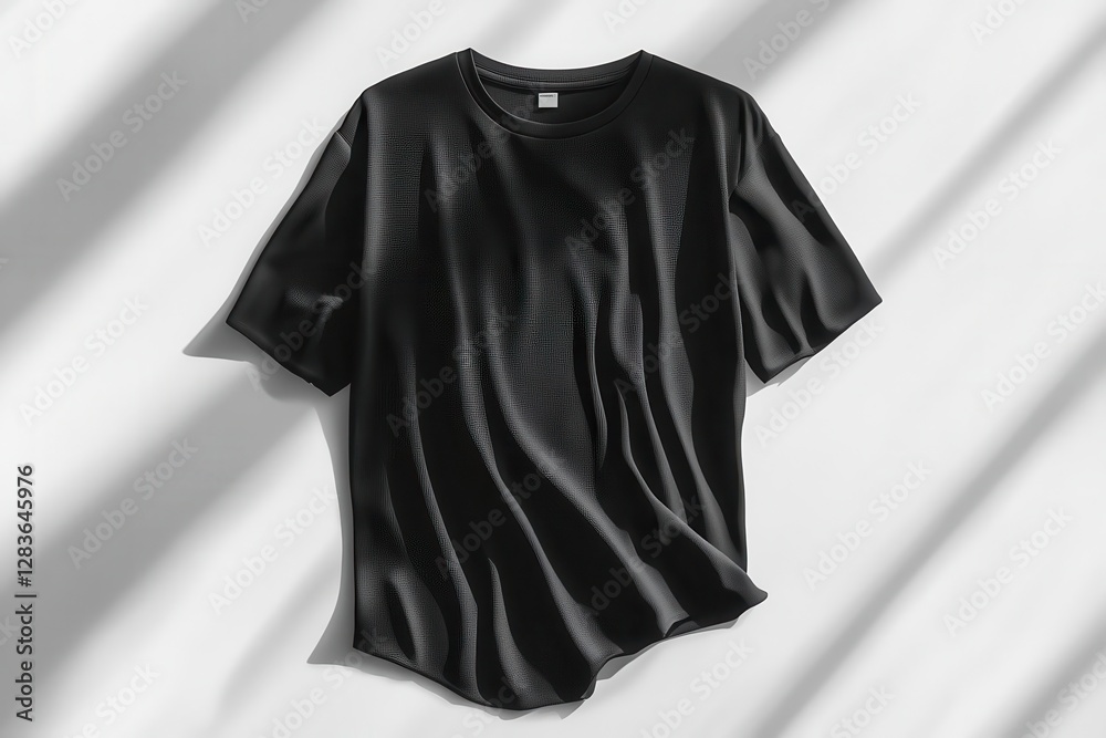 Hyperrealistic black tshirt mockup with dynamic fabric folds studio lighting crisp shadows floating Wall mural