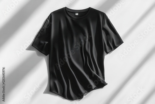 Wall mural hyperrealistic black tshirt mockup with dynamic fabric folds studio lighting crisp shadows floating  - Wall murals Wall mural hyperrealistic black tshirt mockup with dynamic fabric folds studio lighting crisp shadows floating - Wall murals