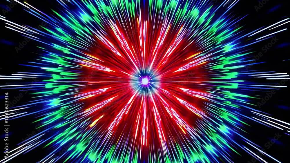 The watermark will not be included on Wall mural.: Hypnotic starburst patterns radiating from central point, generating vibrant visual dynamics with tr