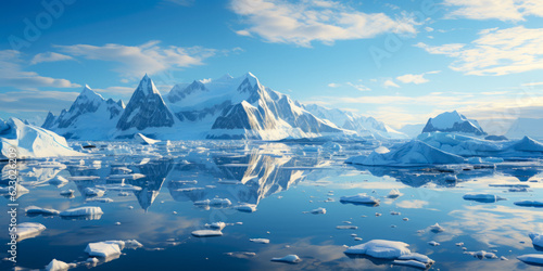 Wall mural ice icebergs and snow covered rocks against the sea created with the help of artificial intelligence