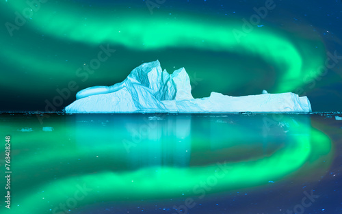 Wall mural : Iceberg floating in greenland fjord with aurora borealis - greenland