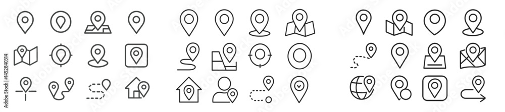 Wall mural : Icon collection showcasing various location markers and mapping symbols for navigation and geography