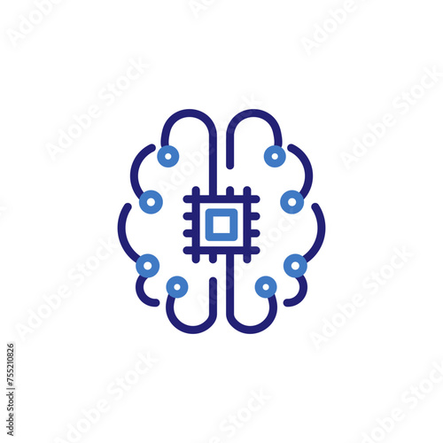 Wall mural icon for artificial intelligence. ai brain icon with circuits and central chip, vector thin line ill