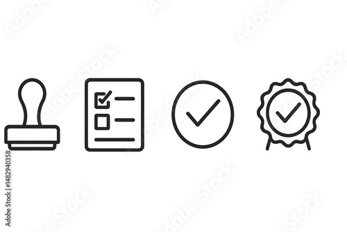 Wall mural : Icons representing approval and verification in a simple design on a white background