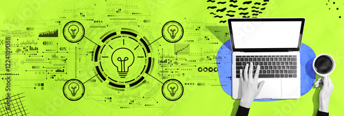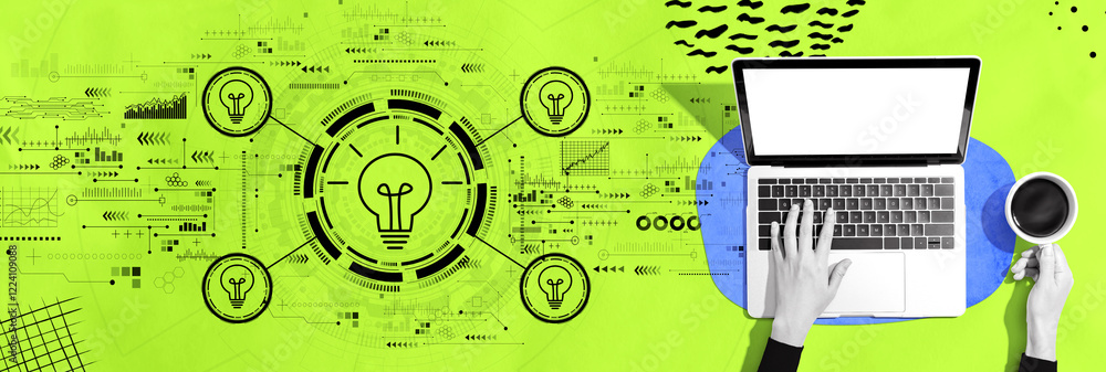 Wall mural idea light bulb theme with person using a laptop computer - Wall murals Wall mural idea light bulb theme with person using a laptop computer - Wall murals