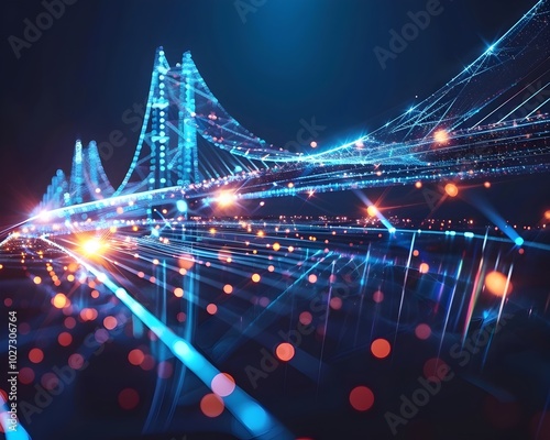 Wall mural illuminated bridge of light and data streams symbolizing technological connections