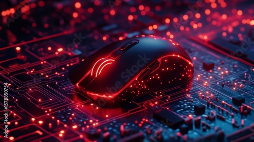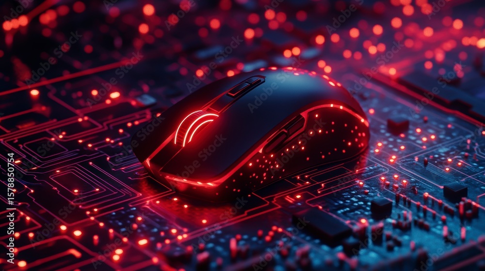 The watermark will not be included on Wall mural.: Illuminated computer mouse on a circuit board -