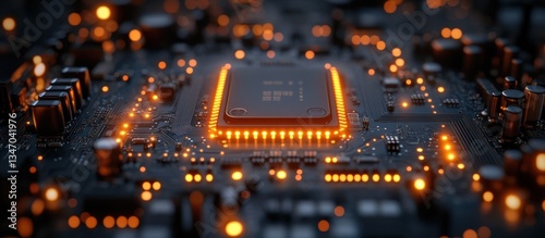 Wall mural illuminated cpu on a circuit board. - Wall murals Wall mural illuminated cpu on a circuit board. - Wall murals