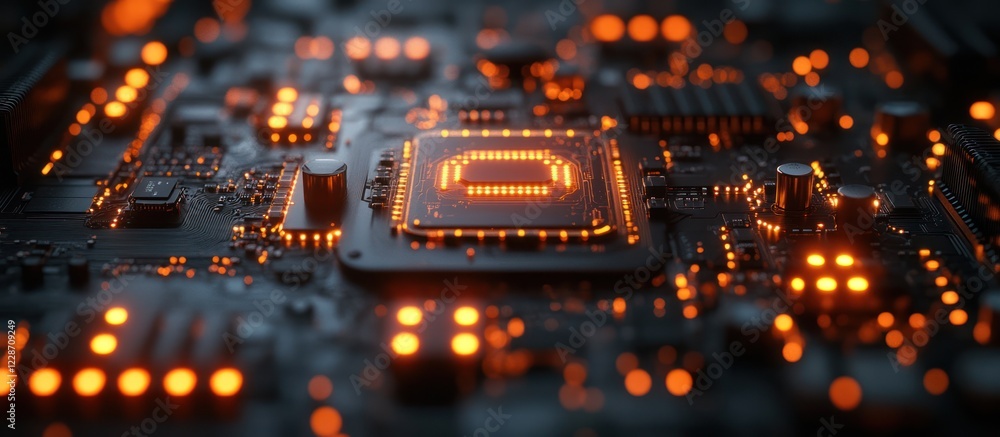 Wall mural illuminated cpu on a circuit board. - Wall murals Wall mural illuminated cpu on a circuit board. - Wall murals