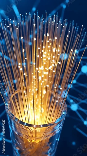 The watermark will not be included on Wall mural.: Illuminated fiber optic cables glowing inside glass, representing high speed data and networking tec