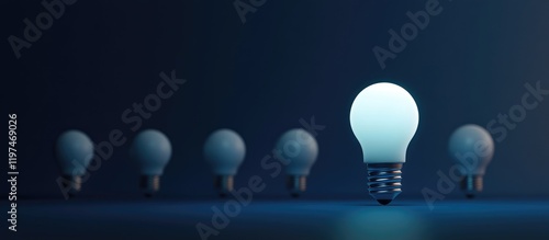 Wall mural illuminated light bulb focused in center with dim blue background and empty space for brand developm - Wall murals Wall mural illuminated light bulb focused in center with dim blue background and empty space for brand developm - Wall murals