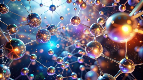 The watermark will not be included on Wall mural.: Illuminated molecular structure a microscopic view of interconnected spheres and bonds in vibrant hu